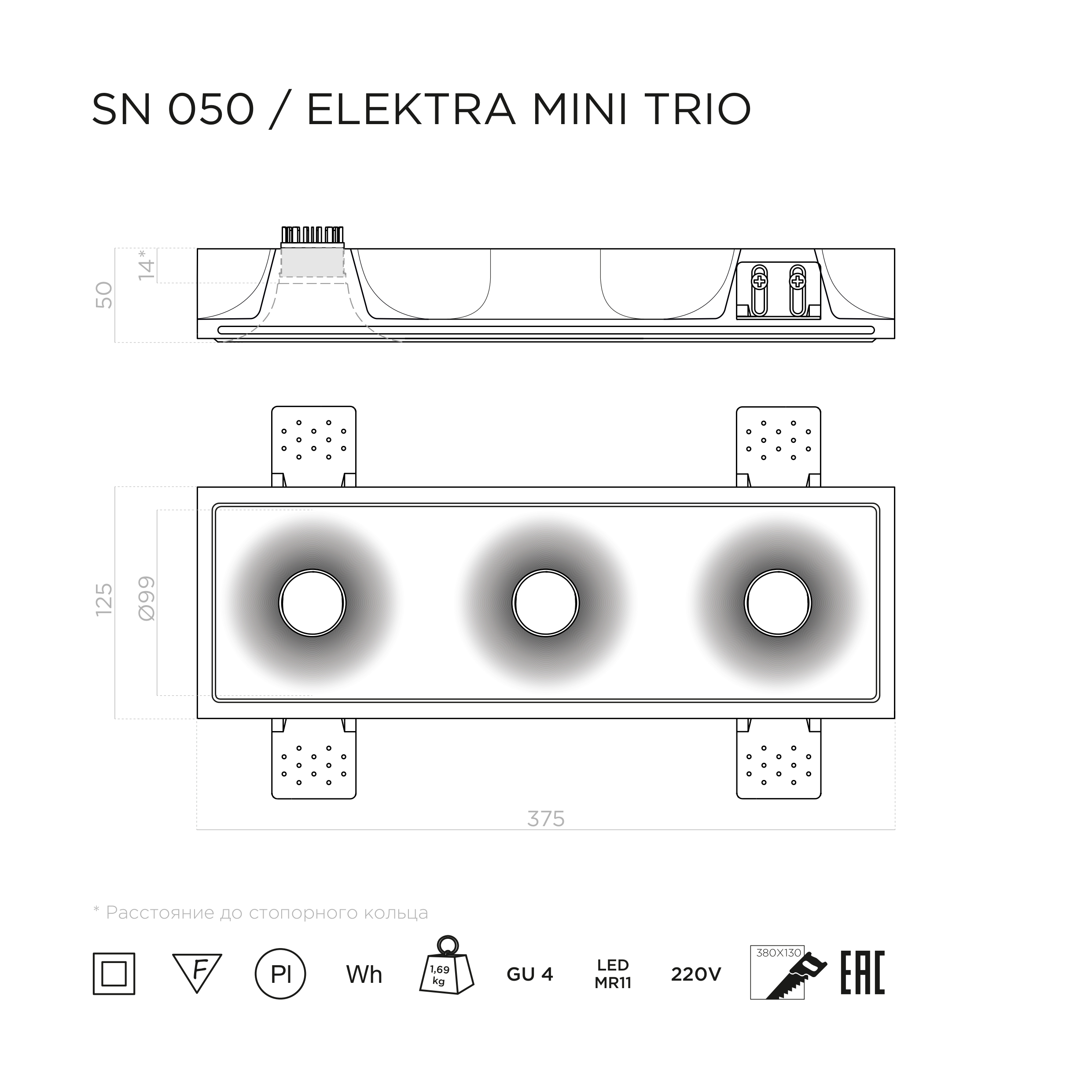—Встраиваемый потолочный светильник Stellanova LED MR11 ELEKTRA MINI TRIO