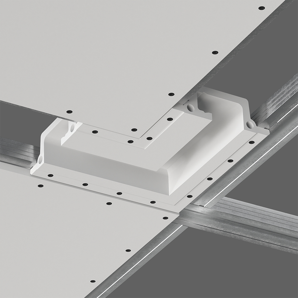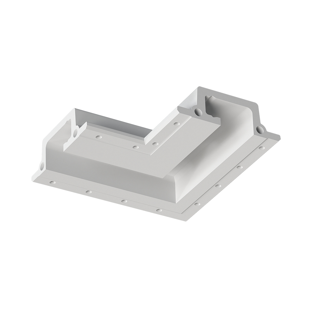 Соединительный элемент (внутренний угол 90) встраиваемой профильной гипсовой системы освещения отражённого света SABER 50 для установки в потолках и стенах из гипсокартона.