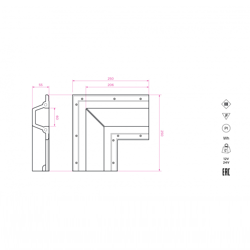 Соединительный элемент (угол 90) встраиваемой профильной гипсовой системы освещения прямого выхода света SABER 60 для установки в потолках и стенах из гипсокартона.