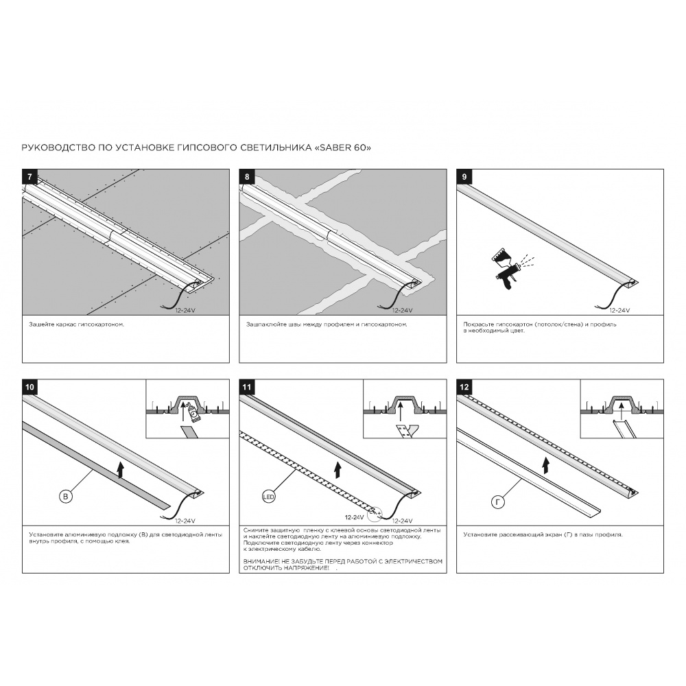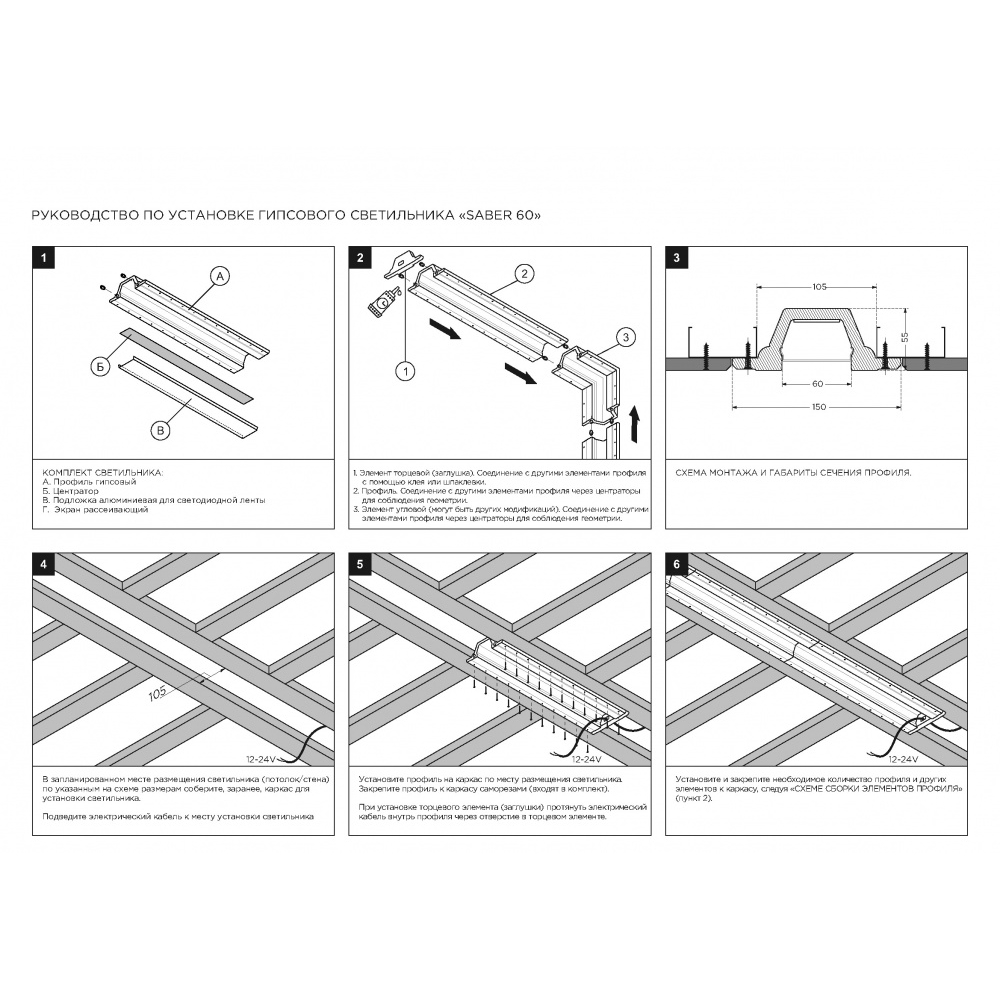 Линейный элемент встраиваемой профильной гипсовой системы освещения прямого выхода света SABER 60 для установки в потолках и стенах из гипсокартона.
